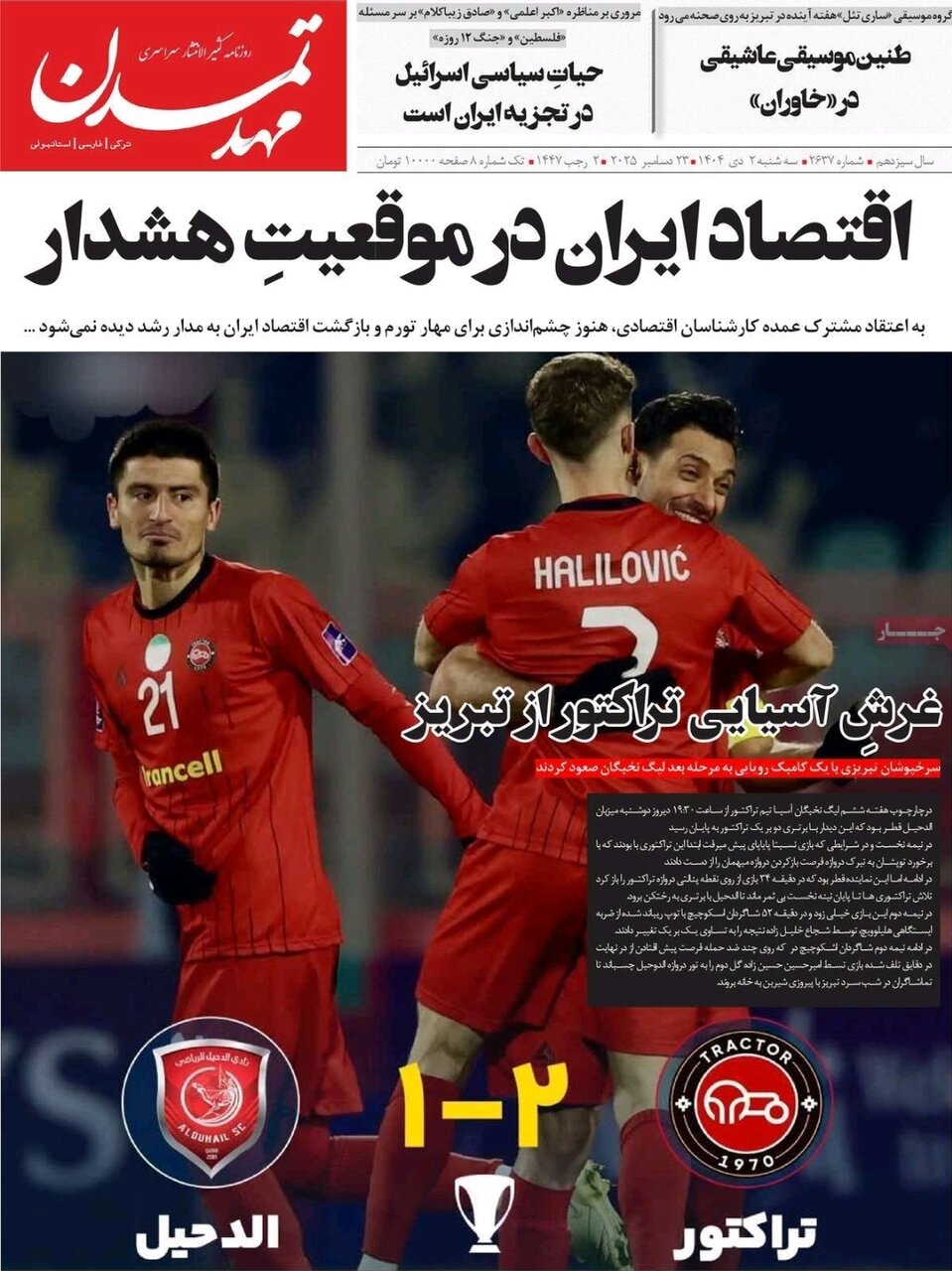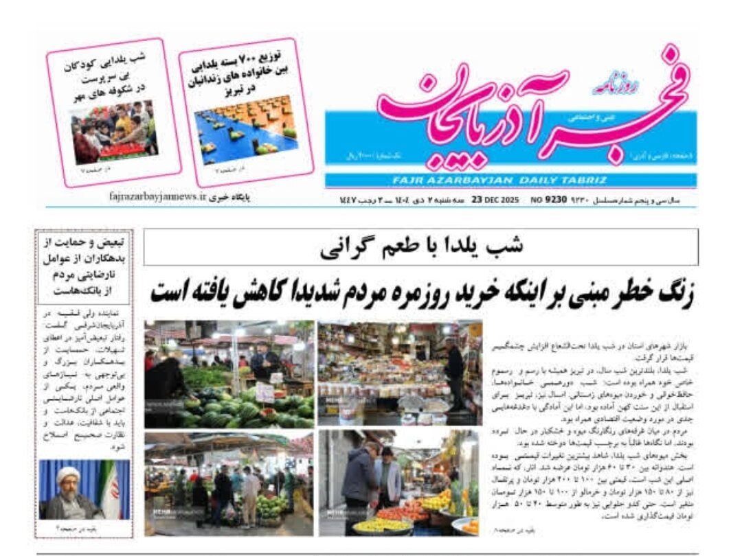 استانها آذربایجان شرقی ۲ دی ۱۴۰۴ - ۰۸:۵۲ دریافت تصاویر صفحه نخست روزنامههای آذربایجان شرقی ۲ دی ۱۴۰۴ برچسبها آذربایجان شرقی صفحه اول روزنامه ها صفحه اول روزنامه های استان ها دکه روزنامه صفحه اول روزنامه های آذربایجان شرقی مطالب مرتبط صفحه نخست روزنامههای آذربایجان شرقی ۱ دی ۱۴۰۴ صفحه نخست روزنامههای آذربایجان شرقی ۳ دی ۱۴۰۴ صفحه نخست روزنامههای آذربایجان شرقی ۳۰ آذر ۱۴۰۴ صفحه نخست روزنامههای آذربایجان شرقی ۶ دی ۱۴۰۴ صفحه نخست روزنامههای آذربایجان شرقی ۲۹ آذر ۱۴۰۴ صفحه نخست روزنامههای آذربایجان شرقی ۷ دی ۱۴۰۴